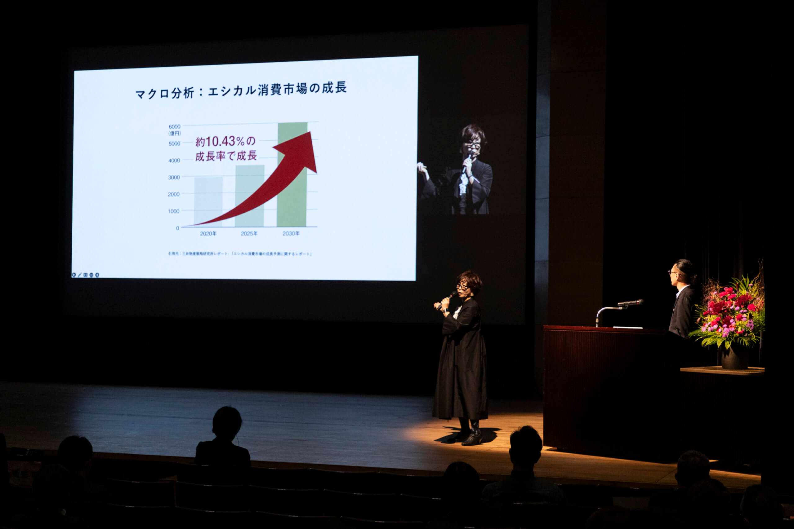 ブランディングでは、時代に合わない販売手法や顧客の高齢化などの問題点を発見。市場分析を行い、エシカル消費市場の規模は年々拡大していることから、販売方法やコミュニケーション手段を改善することでターゲットが若返り、過去最大の売り上げを取り戻せるのではと仮説を立て、ゴールを「ターゲットをシフトし過去最大の売り上げ3億円を取り戻すこと」と設定しました。