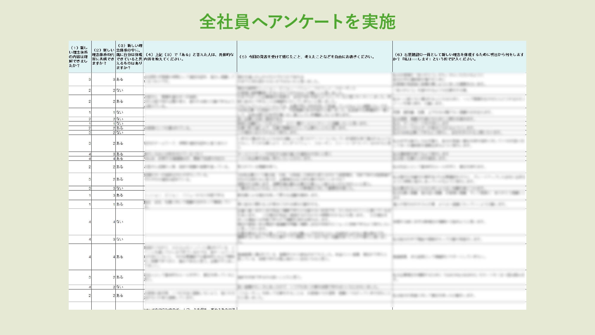 まずは新社長を中心に、部署横断の理念策定プロジェクトを結成。全社員を対象にした社内アンケートに注力し、社員の思いを吸い上げて新理念「MVVSSS(ミッション、ビジョン、バリュー、スピリット、スローガン、ストーリー)」を策定しました。理念策定後は、全社員に向けた「新理念発表会」を開催し、新しい理念の全社共有を行いました。同時に、理念を社内に浸透させるプロジェクトがスタートすることを発表しました。