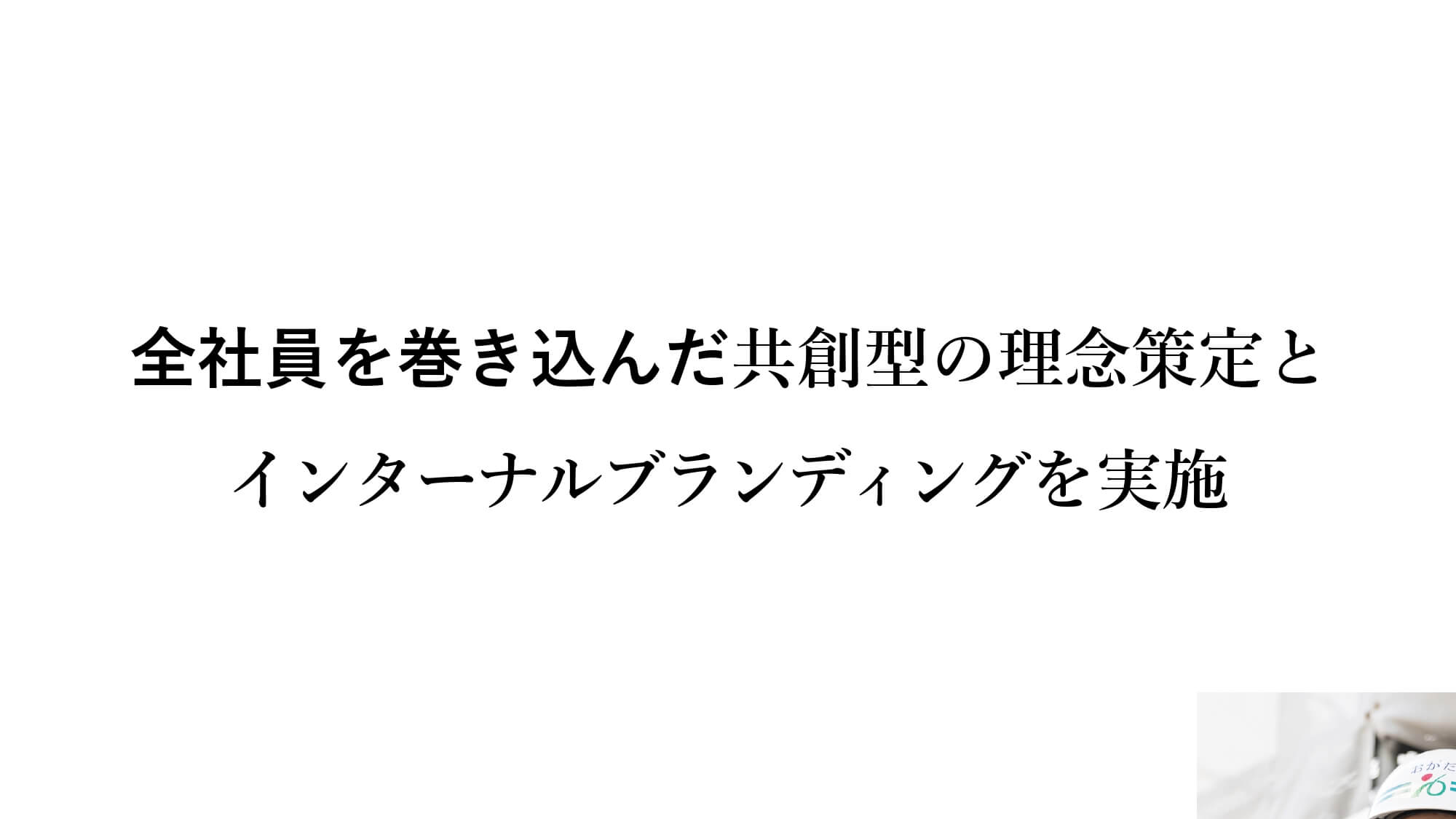 「私の仕事から私たちの使命へ ~年5回しか集まらない組織で実現した、共創型インターナルブランディング」は、創業87年の総合建設企業が「価値観の明文化と共有」を目的にインターナルブランディングに取り組んだ事例です。東海エリアの地域密着企業である石黒建設は、個人主義が根付いた企業風土が特徴であり、さらに全社員が集まるのは年に5回のみで価値観を共有する機会が少ない状況にもありました。そんな中、社長交代をきっかけに「より一層、地域に貢献できる会社にしたい」「それを全社一丸となって全員で取り組んでいきたい」という新社長の思いを実現するために「価値観の明文化と共有」に着手。全社員を巻き込んだ共創型の理念策定とインターナルブランディングに取り組みました。