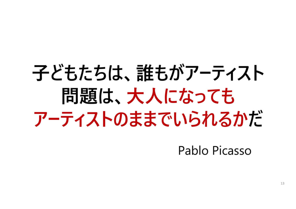 『子どもたちは、誰もがアーティスト、問題は、大人になってもアーティストのままでいられるかだ』パブロ・ピカソは言ったが、現実の大人の多くは、人目を気にして、苦手意識をもってしまい、描くことをやめてしまっている。