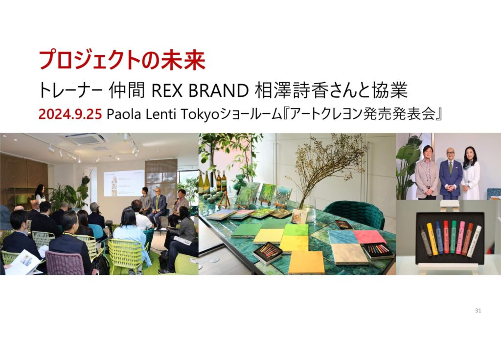 イタリア・ファニチャー・ブランドPaola Lenti Tokyoショールームでの発売発表会後、DESIGNART(デザイナート) TOKYO 2024 Paola Lenti VIPノベルティ採用、artwine.tokyoと「ペアリングしたワインを嗜みなみながら作品を描く、アートワークショップ」の開始など、アートブランドと数々の協業により、誰もが一度は手にしたことのある懐かしいクレヨンを「アートな体験を提供する製品」へと昇華させた。