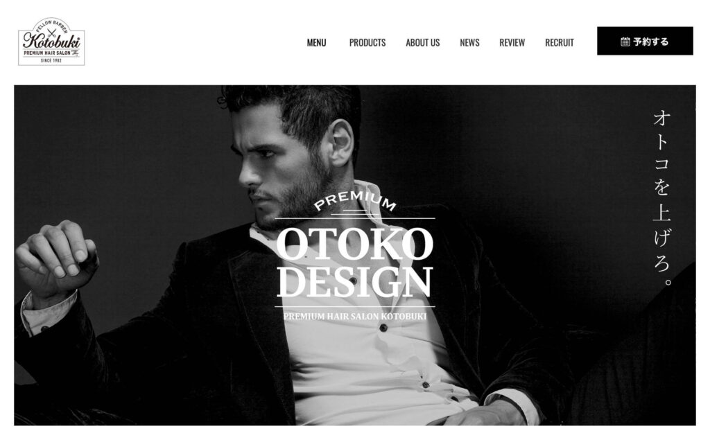 「OTOKO DESIGN」は、埼玉県新座市にある理容室「プレミアムヘアーサロンKOTOBUKI」が立ち上げたブランドです。理容業界は低賃金・低単価化が著しく、人手不足が深刻化しているのが現状。KOTOBUKIも例外ではなく、ブランディング前の新規採用数は年間0人、客層は6割が60代以上の高齢者で、95%が既存顧客という状況でした。