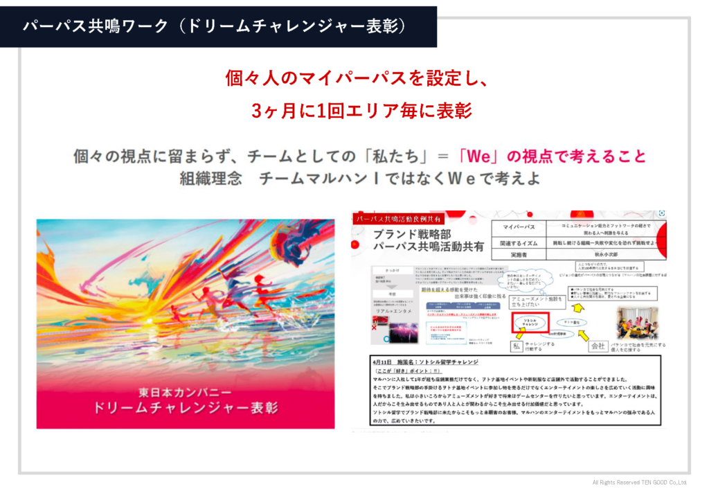 インターナルブランディングでは、メンバーが料理でパーパスを表現することにチャレンジした幹部向けの浸透キックオフを開催。さらにパーパス・ストーリーの精査、社会課題の現場でのフィールドワークも実施したほか、社内への周知徹底用にパーパスポスターやブランドブック、コンセプトムービー、従業員の携帯用の冊子も作成。新規事業提案制度「MiX」や、社内の他部署やグループ企業に留学できる人事制度改革にも着手しました。