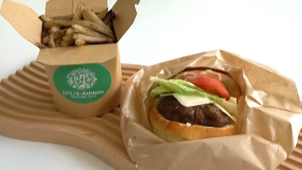 「学内浸透」では具体的な施策として、ラグビーの楽しさを味覚で伝えようと、イノシシを使ったジビエバーガーに「人から奪いたくなるほどおいしい」という意味を込めて「ジャッカルバーガー」、岡山のソウルフード「えびめし」味のポテトに、「放したくないほどおいしすぎる」という意味を込めて「ノットリリースザポテト」と、ラグビーの技に絡めたネーミングの商品を考案。ペルソナとなる学生を集めた試食会や飲食店経営者を招聘した調理実習を行う授業も実施し、ブランドの社会的価値として男子の調理体験によるジェンダー平等や地元の野生鳥獣対策だけではなく、岡山市の関係人口の増加なども狙いとしました。また、害獣として捕獲し食肉加工後のイノシシの皮を活用したコースターも作成。オープンキャンパスでは、ポスター発表に加えて端材を用いた堆肥づくりも企画し、ジビエバーガーを通じたサーキュラーエコノミーにも挑戦しました。