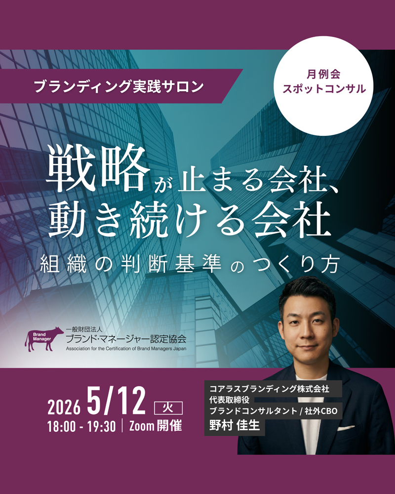ブランド支援の現場で“稼ぐ力”を磨く、3時間の集中講座。当協会代表理事・岩本俊幸が、実践で培ったノウハウを余すことなく伝授。クライアントの課題を整理し、価値提案からクロージングまで導く「現場で成果を出すコンサルティング力」を体系的に学びます。提案書づくりや価格設計、顧客との関係構築など、提案〜クロージング〜収益モデル設計までを一気通貫で実践的に習得できます。