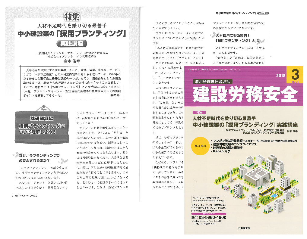 建設労務安全(労働調査会発行)2018年3月号に、当協会代表理事が執筆した特集記事が掲載されました。