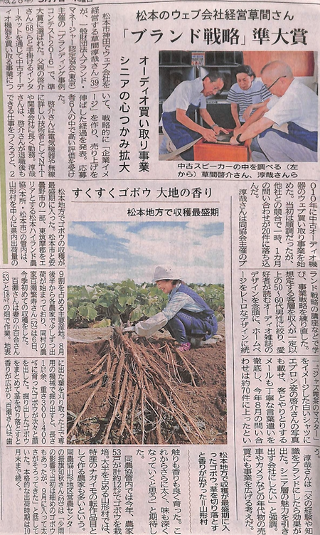 2016年度ブランディング事例コンテストで準大賞を受賞された、株式会社ウェブエイトの草間淳哉さん(当協会トレーナー)が、市民タイムスの取材を受け9/7号にその内容が掲載されました。
