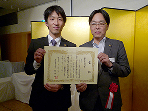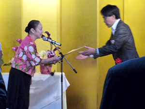 エッセイストの大前玲子氏から賞状を授与される、弊協会代表理事岩本。