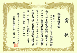 2013年12月18日(水)に開催されました、協会アワード2013コンテスト(公益財団法人日本生涯学習協議会後援)にて一般財団法人ブランド・マネージャー認定協会の活動が優れた生涯学習活動であると評価され、「審査員特別賞」を受賞いたしました!