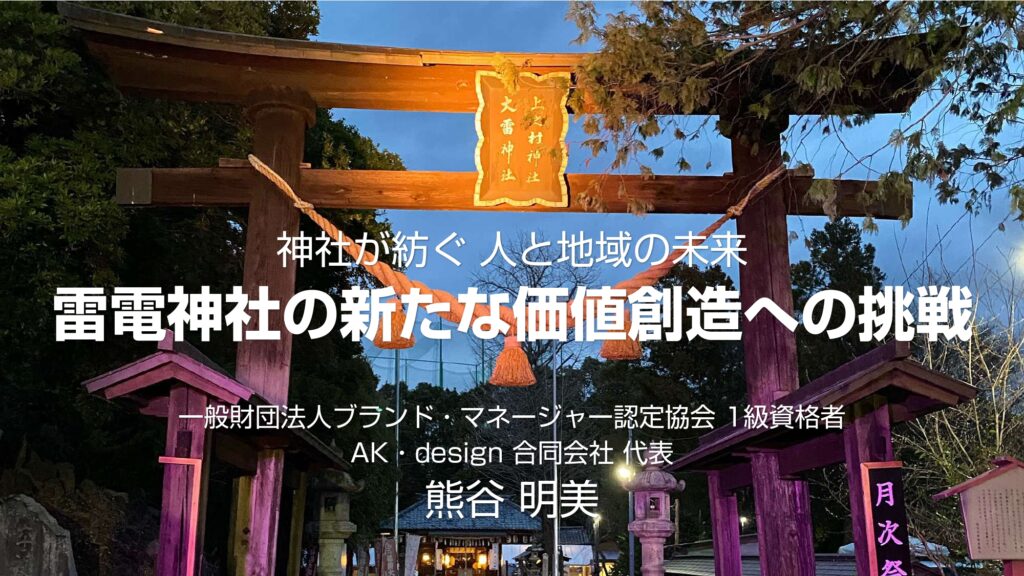 2025年度のBRAND MANAGEMENT AWARDで地域創生審査員特別賞を受賞した事例「神社が紡ぐ人と地域の未来 雷電神社の新たな価値創造への挑戦」について、AK・design 合同会社の熊谷明美氏にお話を伺いました。