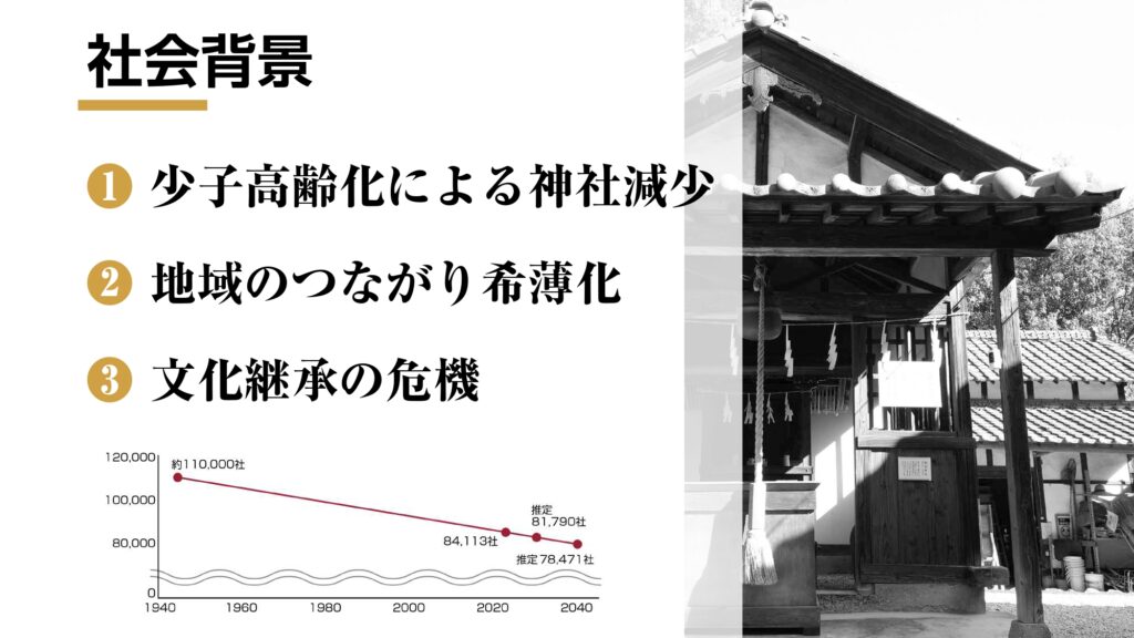 ただ今は、日本の神社は「少子高齢化による神社の減少」「地域のつながりの希薄化」「文化継承の危機」という3つの危機に直面しており、上之雷電神社も例外ではありませんでした。