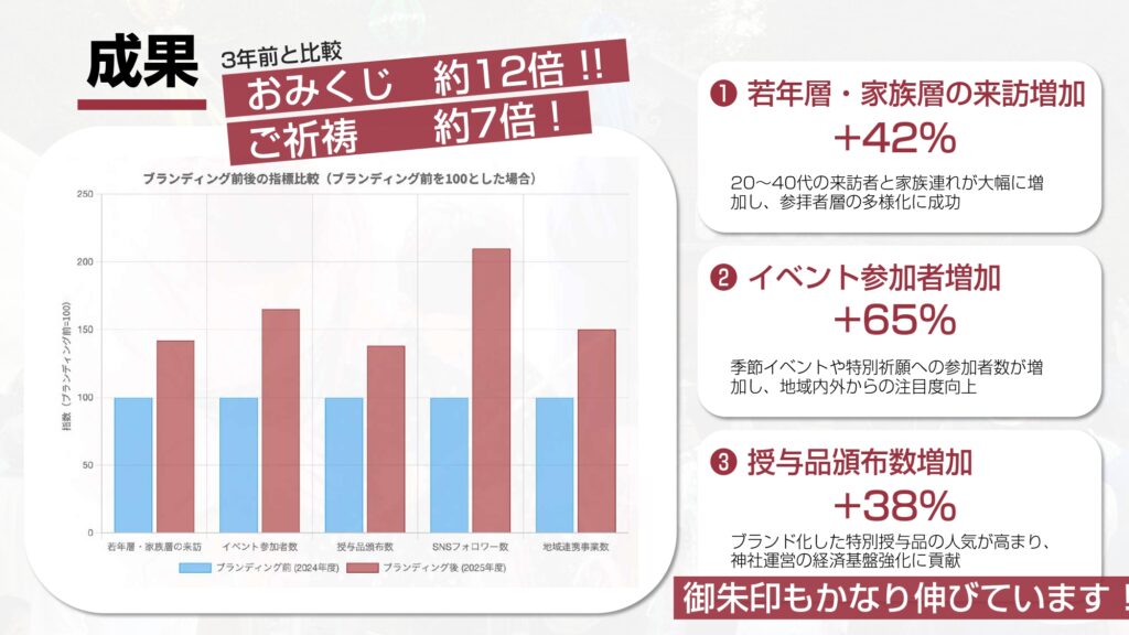 新たな価値を創造することで、参拝客の増加という結果を生み出しました。