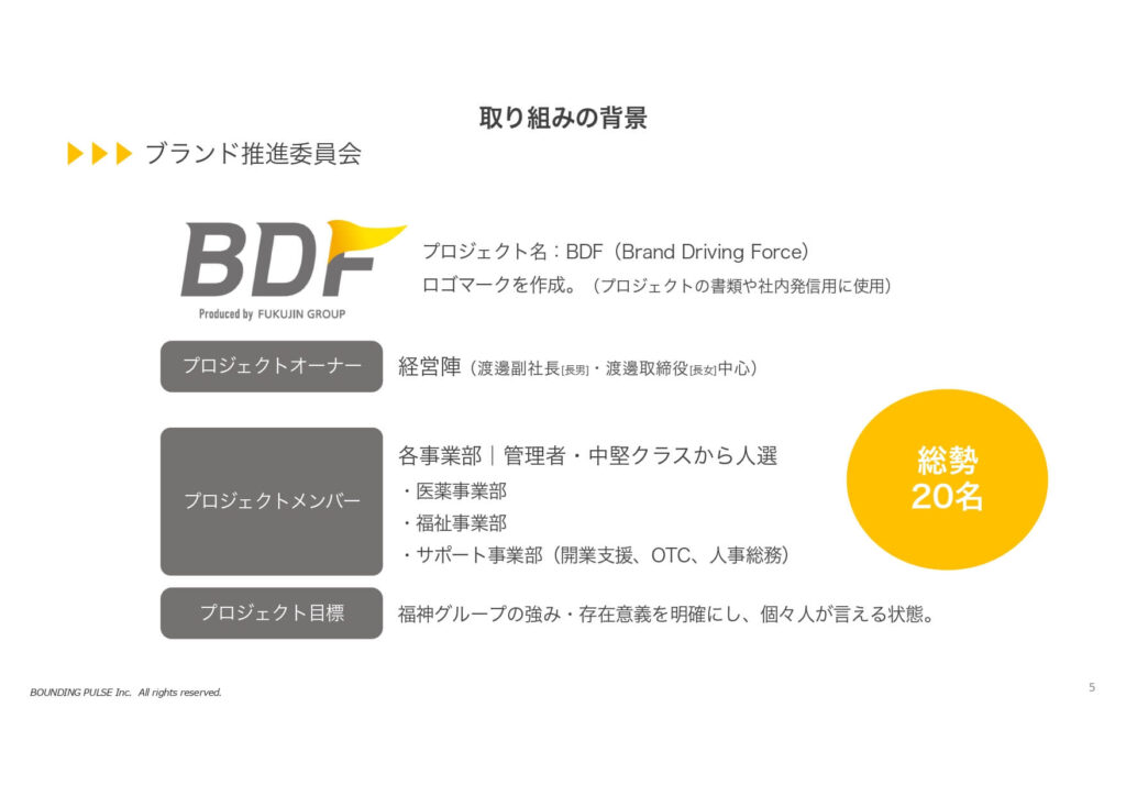 委員会名は「ブランド・ドライビング・フォース」、略して「BDF」として、ロゴマークも作りました。