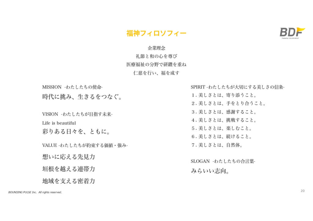 なお、もともとの企業理念はそのまま残し、「福神フィロソフィー」という形でまとめています。