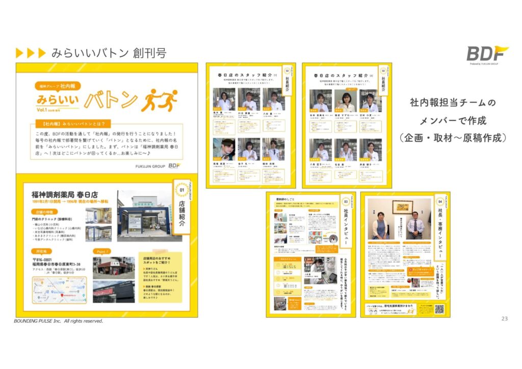 また並行して社内報「みらいいバトン」の発刊、ブランドブック「「みらいいスタイル」の作成をBDFメンバーが主体となって進めていきます。