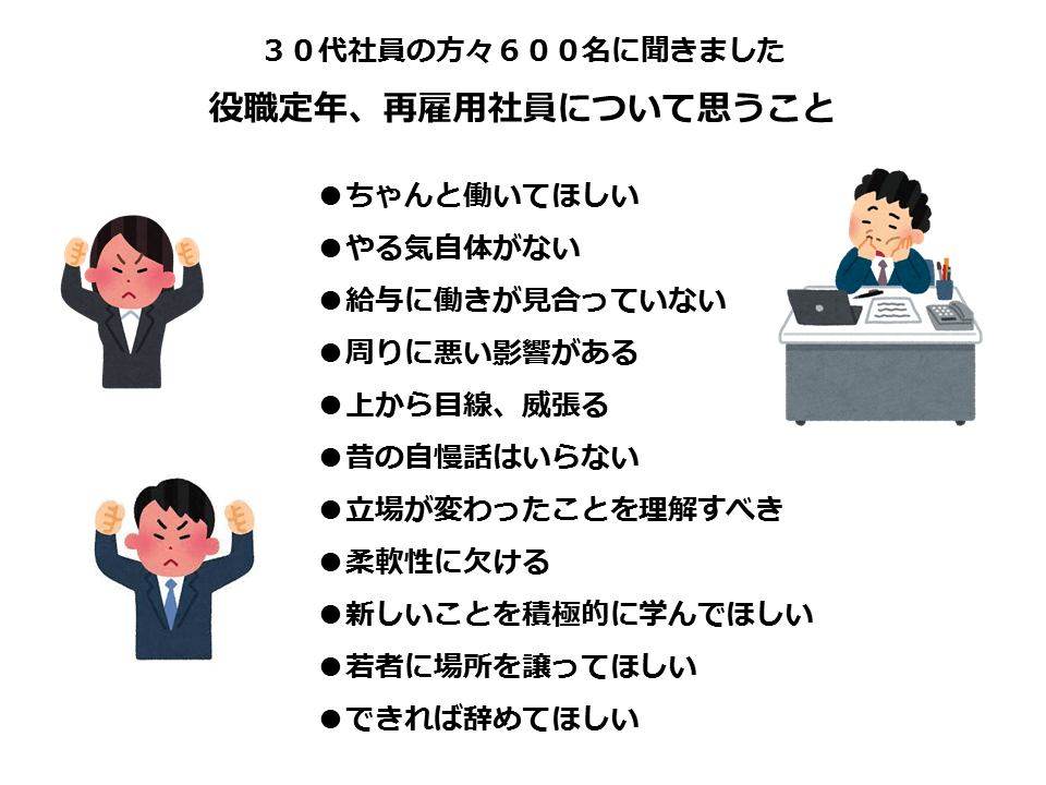 30代の方には役職定年や再雇用の方たちに対するご意見も書いてもらったのですが、すごい数のご意見をいただいて。