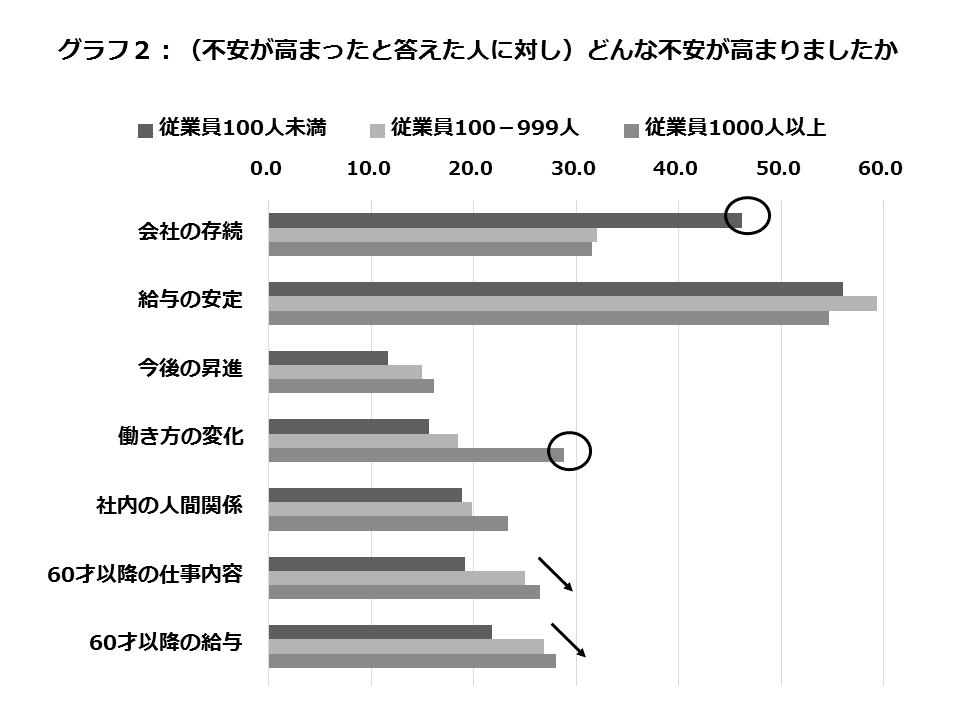 ただ、大企業と中小企業では少し内容が異なっていて、中小企業だと「会社が存続するのか」という不安ですが、大企業の場合は「60歳以降の仕事の中身や給与はどうなるか」という不安なんです。
