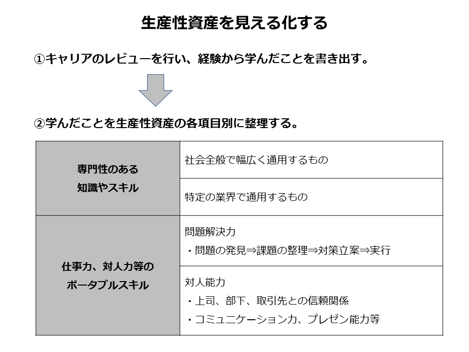 これと「専門性のあるテクニカルスキル」も含めたものを「生産性資産」と呼んでいます。