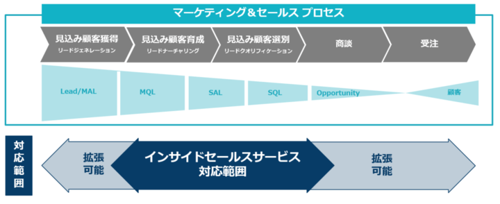 そしてSales Labについてお話しすると、こうしたインサイドセールスのプロセスを丸ごと行うアウトソーシング型の企業であり、戦略立案や人材、ツールなどもすべて提供しています。