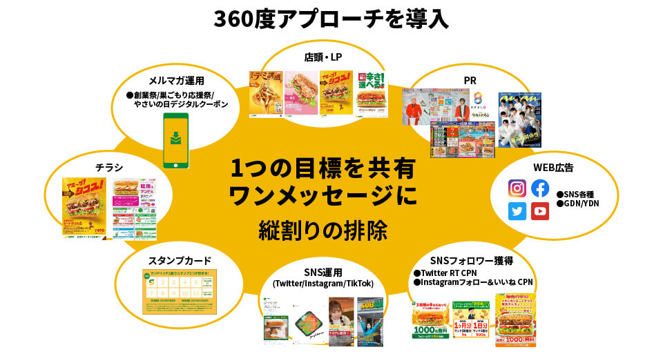 また、ポジショニングが強いのだから、知恵で抜けていけるのではないか?とも考えました。入社後に決めたのは「限られたリソースで勝つ」ということ。周りを見れば、それを実行している企業はたくさんあります。我々にもできないわけはない。では、どうやって勝つか? そこはデジタルを使おう、と言っていました。それまではTV広告やチラシ、ウェブ広告、SNSなどいろいろ展開していましたが、分散するからもうやめよう、と。これからはデジタルマーケティングを強化し、360度アプローチで統合していくと決めました。それが、私がマーケティング本部長に就任してから1ヶ月後ぐらいのことでした。