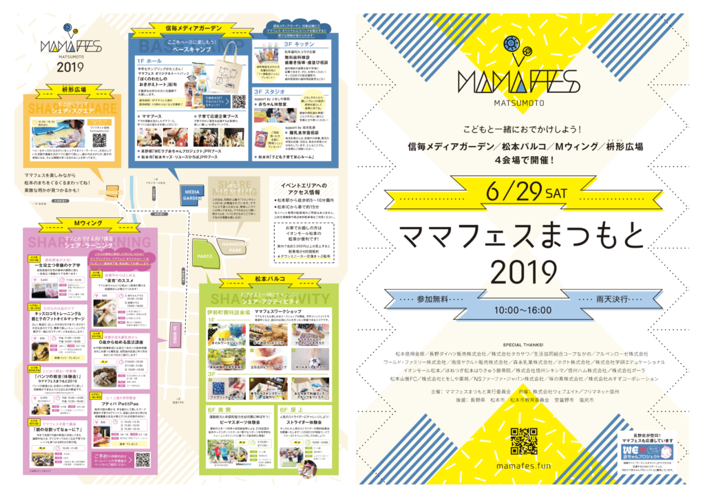 はい、よろしくお願いします。「ママフェスまつもと」は、一言で言うと「松本の中心市街地の複数の施設にコンテンツを配置し、“ママと子ども”がまちを回遊しながら楽しむ」というイベントです。イベントアイデンティティは「街と人とメディアが1つになってママと子どもと楽しめる1日を作ります!」とし、これまでに2018~19年の6月と11月に計4回実施しています。