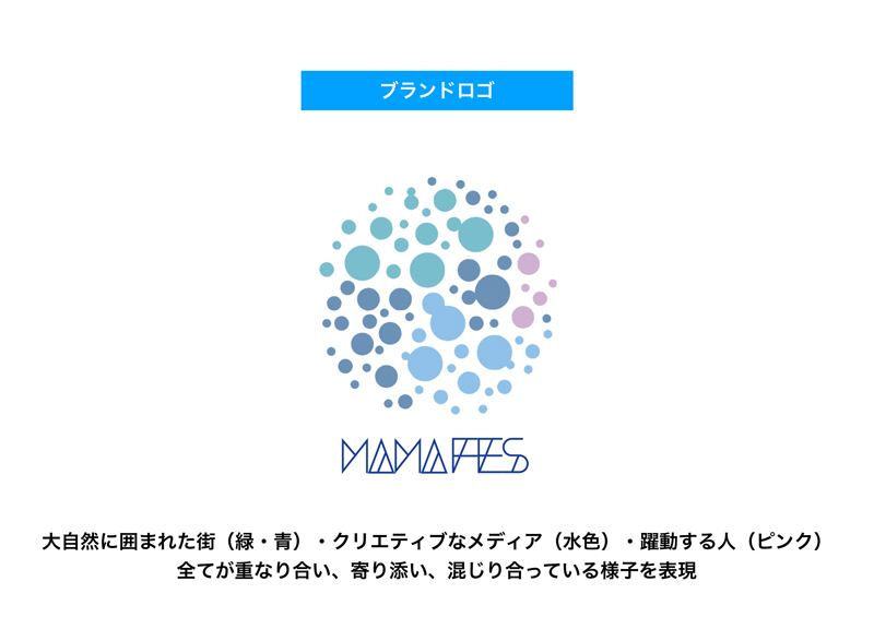 3C分析を行い、私たちの強み、代理店・地元メディア、このまちで子育てするママのニーズを確認しました。また、ブランドロゴも作成しました。これは「大自然に囲まれた街」を表す緑と青、「クリエイティブなメディア」を表す水色、「躍動する人」を表すピンク、という色がすべて重なり合い、寄り添い、混じっている様子を表現しています。イベントロゴでは3つの丸で、3つの会場と松本の山々、そこに寄り添う親子を表現し、ブランドメッセージは「このまちの子育てを、もっと誇れるように」としました。