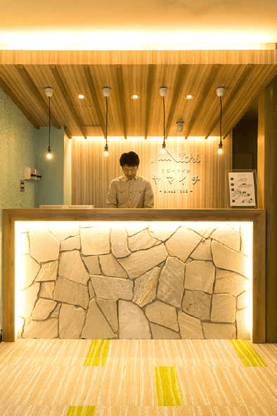 宿の内装や看板をリニューアルしました。フロントは、ブランディング前は薄暗い印象でしたが、山肌をイメージした明るいフロントに変更しています。また、レストランも以前は長方形のテーブルが並んだ、ハイシーズン時の席数確保を優先したレイアウトでしたが、丸テーブルに変え、ヤマイチ流の創作フレンチを楽しむのにふさわしい、明るく温かみのある雰囲気にリニューアルしました。客室は外国人を意識し、一部の客室は景色を楽しめるウインドウシートを導入しています。
