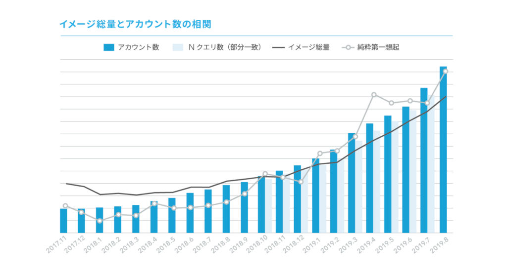 そして最後は、「これまでのブランディングが、ビジネス貢献しているのか?」ということ。これが今回、一番やりたかったことです。そこで、イメージ総量と純粋第一想起率とアカウント数を並べた図を見ると、見事に相関しているのがわかります。図を見たときの経営陣の驚きと感心は、今も忘れられないですね(笑)