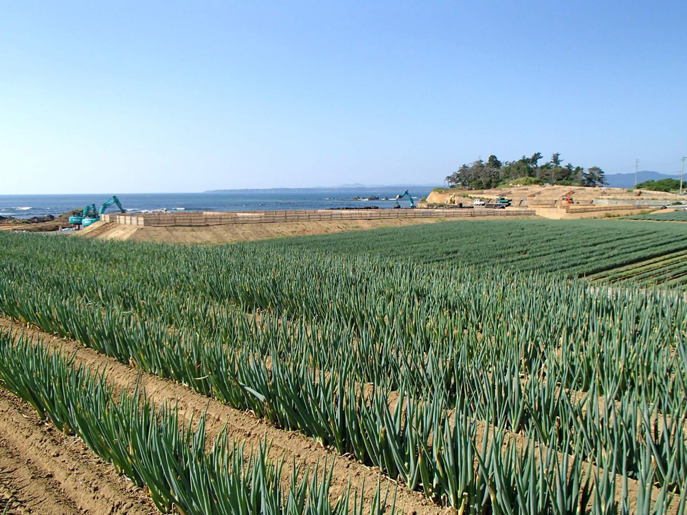 「南三陸ねぎ」は復旧農地を活用して栽培されています。津波被害を受けた土地は、塩分濃度が高くなってしまっているのですが、ねぎは「塩害に強い」野菜なので、栽培にはうってつけだったんですね。特徴は、緑の部分まで「甘い」ということ。仮説ですが、この土地の寒さや、海から吹く強い潮風によって甘みとミネラルが発達したのではないかと考えています。南三陸ねぎは常に潮風に吹かれているのですが、風速15メートル以上の風にあおられると、農作物は甘くなるらしいんです。これからは専門家も交えて、これらのエビデンスを得ていければと思っています。
