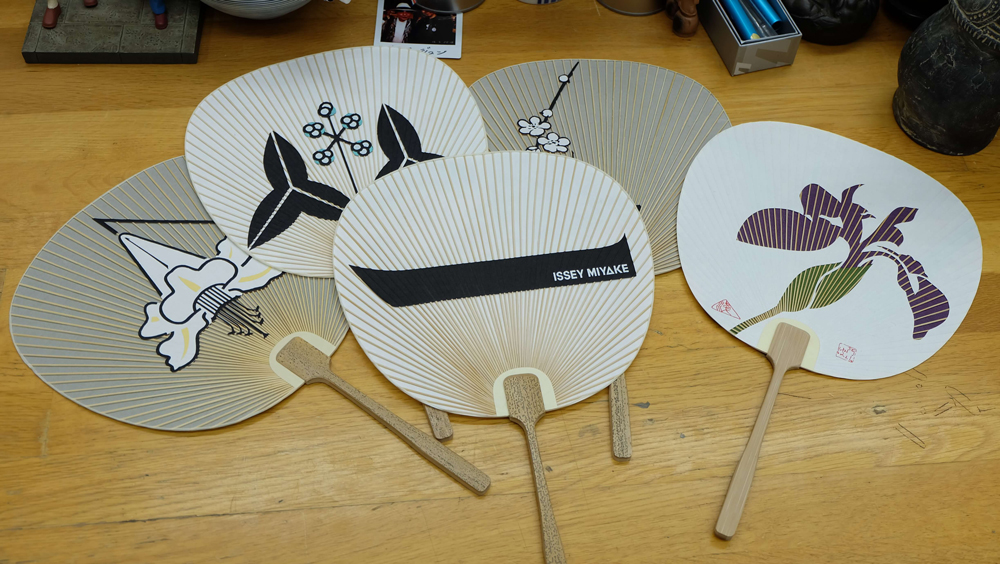 また、「一」のデザインは、一生だから「一」がいいかなと考案しました。一は、書道で最初に書く字であり、書くのが一番難しい字でもあるんです。実はこのロゴを作ったとき、中国の唐代の顔真卿(がんしんけい)という書家が44歳のときに書いた楷書の「一」の字に挑戦したんです。もちろんデザイナーが書家になる必要はないのですが、デザインをするうえでは、筆を持つ経験をした方がいいというのが私の持論ですね。たとえばコンピュータでは一本の線しか出ませんが、何百本もの動物の毛から作られた筆をコントロールすることは、至難の業なんです。世のデザイナーには、そこに挑戦してほしいという思いがありますね。他にうちわも作りました。