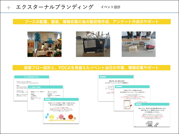 現場中心に構築したブランドを孤立させず社内浸透させること、そしてブランドを浸透させていくエクスターナルブランディングの部分を大切にして、反応を感じてもらうことです。インターナルブランディングをちゃんとやっても、それが伝わるように情報が発信できなければブランドは浸透しませんよね。それではクライアントの事業の成長にはつながらず、期待に応えられたとは言いがたいですよね。なぜなら、内部の変化を加速させるのは、クライアントのお客様からの反応であるからだと思っているからです。