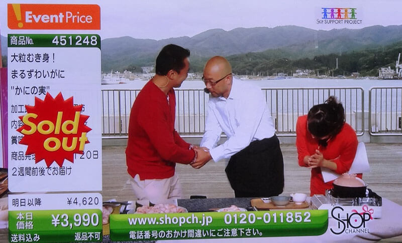 そのうち、ECサイト、店舗、催事がそれぞれ2割、残りの4割が卸になります。卸先は百貨店やギフトカタログ、駅、生協といったところやホテルやレストランへの業務用もあります。その中で売上のシェアが高いのがテレビ通販の「ショップチャンネル」です。ここでは1回の放送で、送料込みで約5,000~6,000円の商品を、1,000セット以上販売してしまいます。ただカニのむき身などは以前から販売しているのでよく売れるのですが、「かに物語」の惣菜はまだ知名度も低く、訴求力も弱い。
