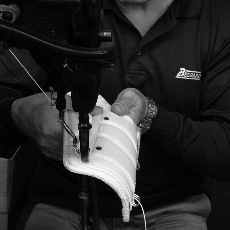 私たちがこだわったのは、自社の強みを強化することでした。前の会社でも定評のあった防具には、すでに多くのファンがいました。この技術は国内屈指です。大手メーカーの野球用品は海外製が多いですから、それに対抗するためには高い技術力と材料にこだわって作る“メイドインジャパン”の防具に特化するしかない、と考えたのです。ベルガードの防具はすべて、国内の職人が手作りで丁寧に製作しています。基本的には半製品でストックしておき、注文が入ると作るという「受注生産」方式です。注文を頂いてから出来上がりまでに2週間~約1カ月かかりますが、「軽量」で「耐久性」に優れていると好評を頂いています。