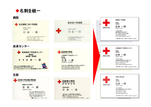 そのころ、血液センター、日赤支部、日赤病院、社会福祉施設、看護専門学校などのロゴマークは統一されていませんでした。使い方や条件の取り決めもなく各所が勝手に作ってしまったため、それらが同じ日赤の事業であると意識されていなかったことが原因だったのです。