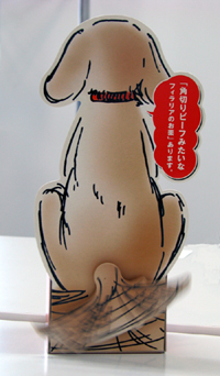そうです。イヌの喜びを伝えるのにはベストです。予算の少ない中で、メディアを選択し、余ったお金でこのポップを作ったのです。ペットオーナーが、獣医師さんの所に来たときのリマインダーの目的で作りました。獣医師さんのところはカウンターが狭いですから、できるだけ小さくして、太陽電池でしっぽが動くようにし、興味を持ったペッットオーナーに看護師さんが説明できるようにしました。