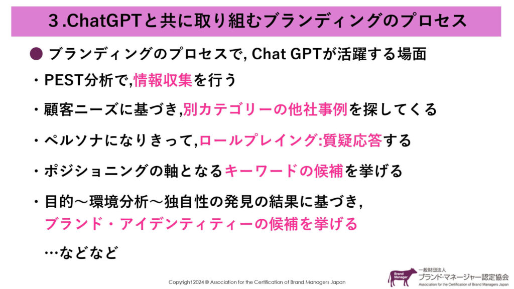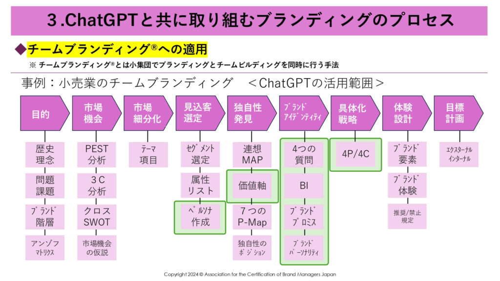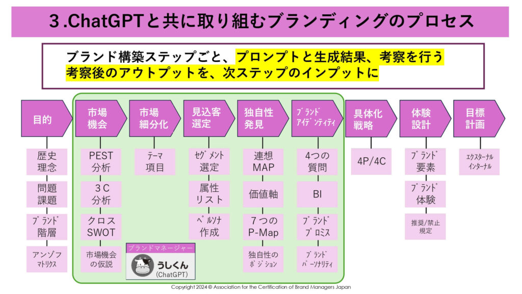 要するに、「ブランド構築ステップをChatGPTと一緒にやっていきますよ」ということですね。