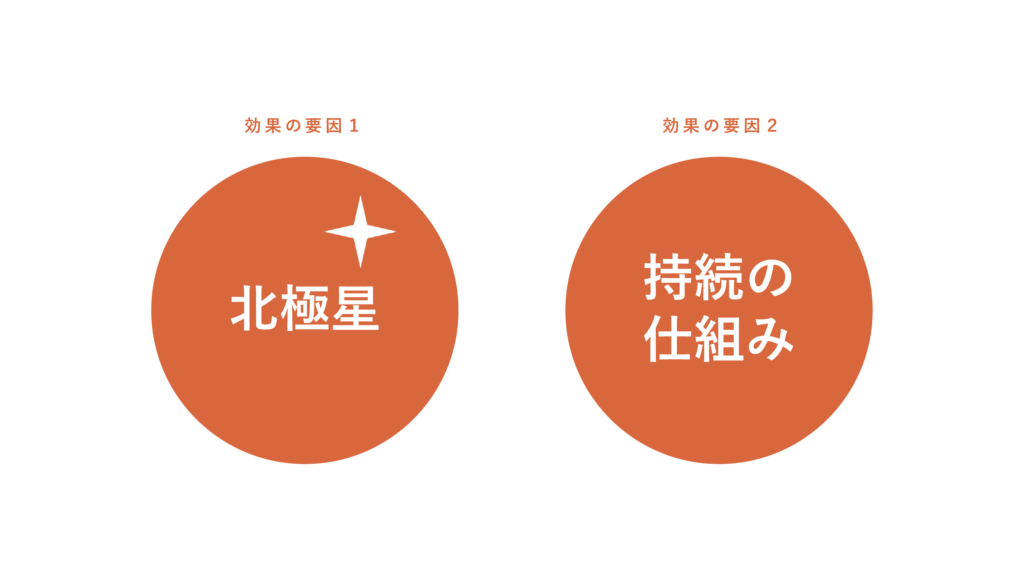 1つは、みんなが同じ方向を向いていけるように、進むべき方向を示す北極星のような指針を持ったこと。