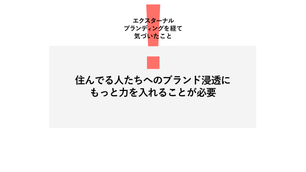 エクスターナルブランディングに取り組む前に住んでいる人たちへのブランド浸透にもっと力を注ぐことが必要だと気づきました。