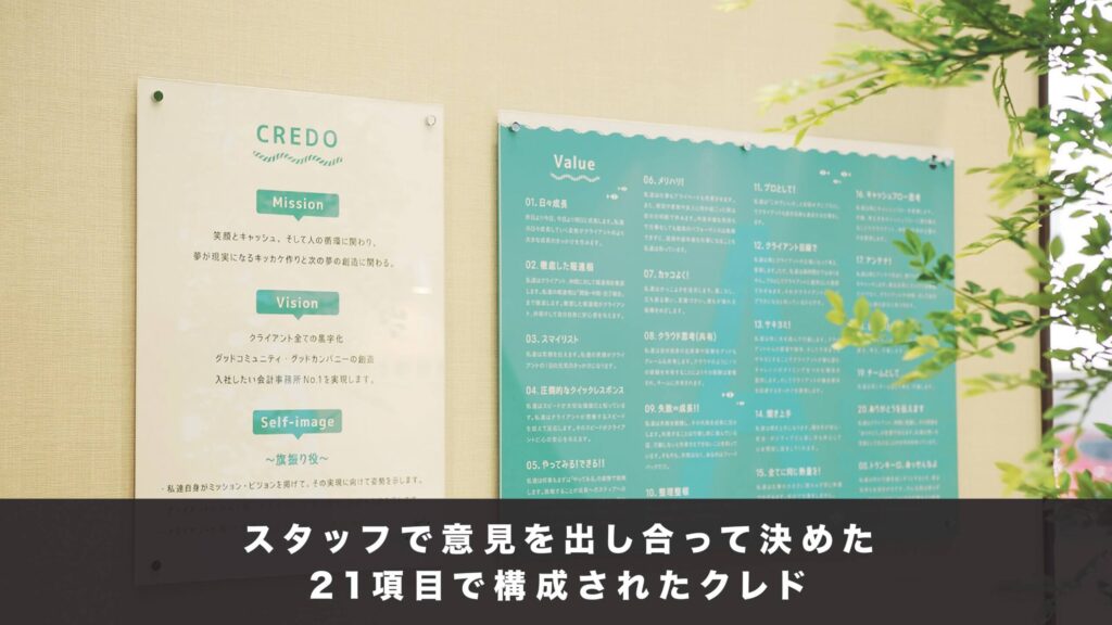 クレドは、「日々成長」「徹底した報連相」などスタッフで意見を出し合って決めた21項目で構成されており、クレドカードは増刷を繰り返してすでに1000枚以上を発行しています。